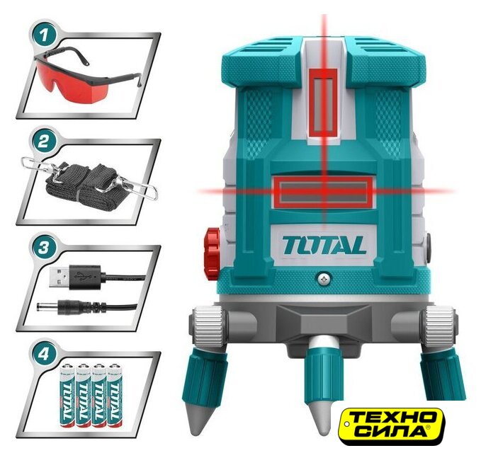 Комплект поставки | - Уровень лазерный - 1 шт.- Очки для лазерных приборов - 1 шт.- Ремешок - 1 шт.- USB-кабель - 1 шт.- Батарейки АА - 4 шт.- Коробка |