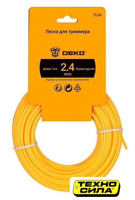 применение: для газонной травы, материал: нейлон, тип сечения лески: круг, диаметр лески 2.4 мм, длина лески 15 м, цвет: оранжевый