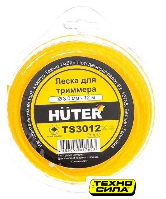 применение: для газонной травы, материал: пластик ABS, тип сечения лески: круг, диаметр лески 3 мм, длина лески 12 м, цвет: желтый