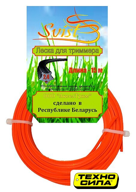 применение: для газонной травы, тип сечения лески: круг, диаметр лески 2 мм, длина лески 15 м, цвет: зеленый