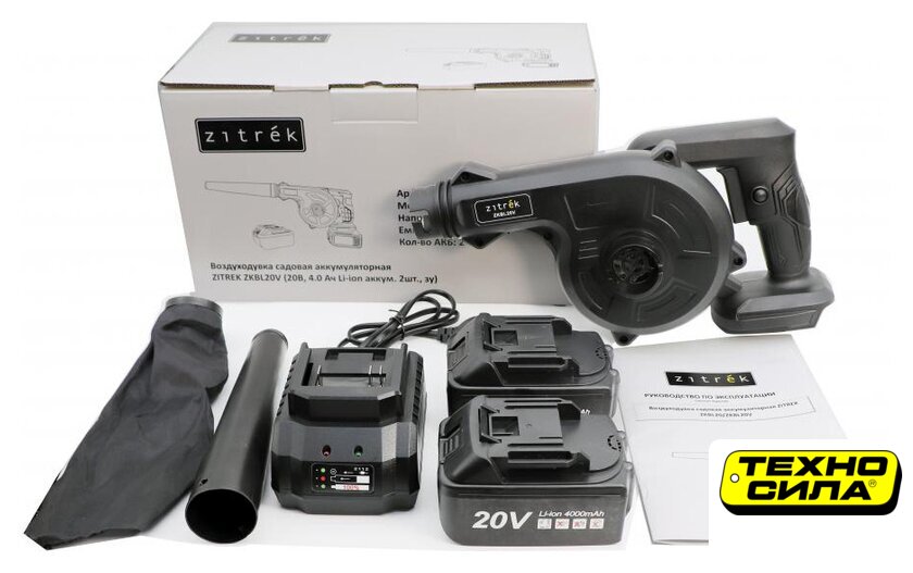 Комплектация | - Воздуходувка-пылесос - 1 шт.- Зарядное устройство - 1 шт.- Аккумулятор 4,0 Ач - 2 шт.- Мусоросборник - 1 шт.- Насадка-труба - 1 шт.- Инструкция- Коробка |