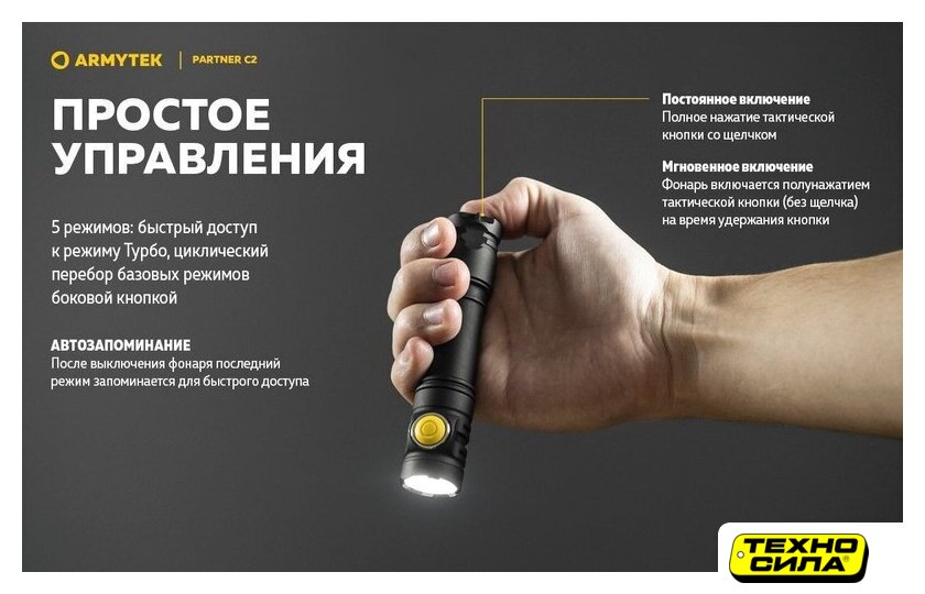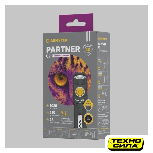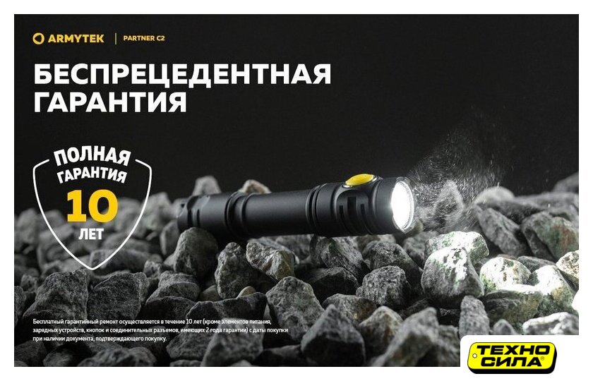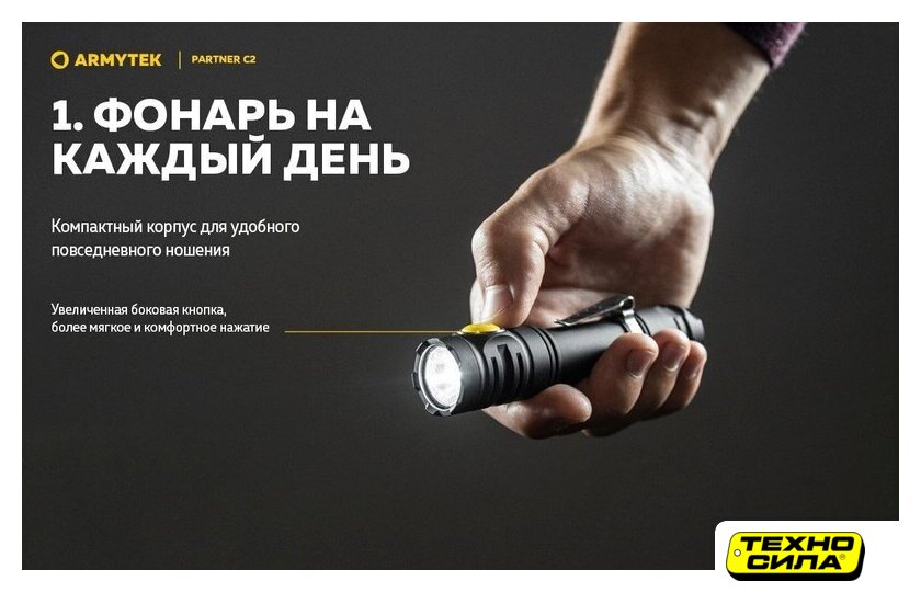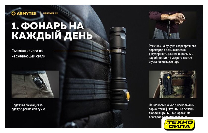 Комплект поставки | - Фонарь;- Аккумулятор;- Магнитная USB-зарядка;- Стальная клипса;- Нейлоновый чехол;- Ремешок на руку;- 2 запасных уплотнительных кольца;- Инструкция. |