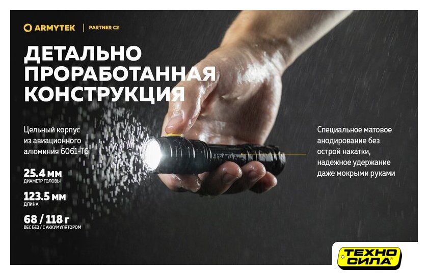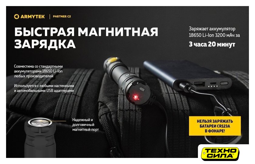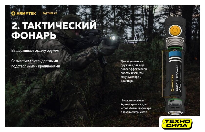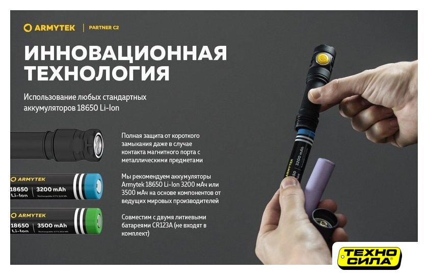 Типоразмер аккумулятора | 1x18650, 2xCR123A |