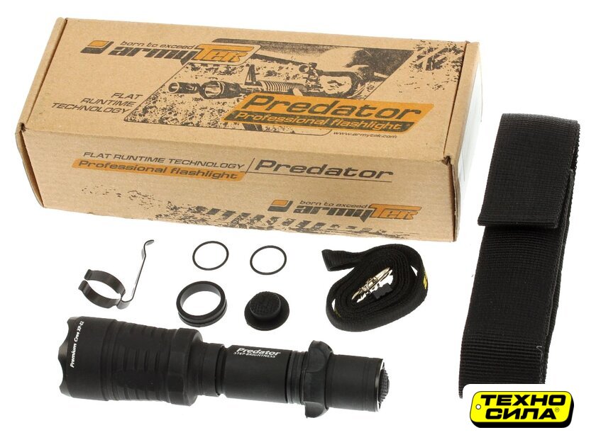 Комплект поставки | - фонарь;- резиновые кольца – 2 шт.;- резиновый грип-упор;- чехол;- ремешок на руку;- запасные уплотнительные кольца – 2 шт.;- запасной колпачок кнопки;- инструкция по эксплуатации. |