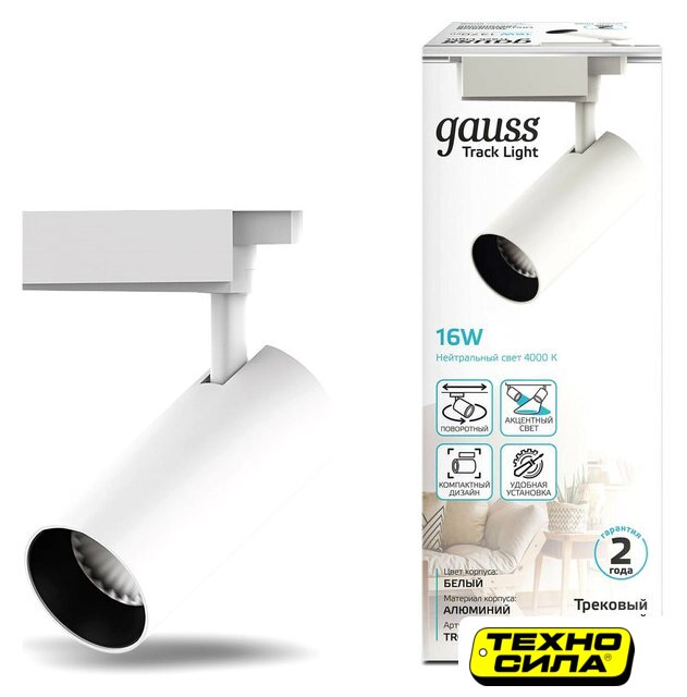 трековый светильник, плафон белый, каркас белый
