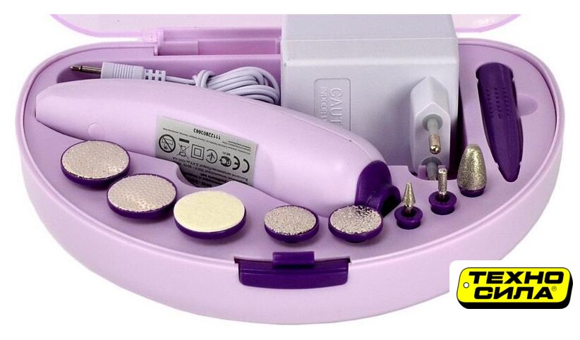 Комплектация | - большая конусообразная насадка- цилиндрическая насадка- конусообразная насадка- малый диск для подпиливания (с мелкой насечкой)- малый диск для подпиливания (с крупной насечкой)- мягкий диск-насадка для полировки- диск-насадка (менее шероховатая) длямягкого удаления огрубевшей кожи- диск-насадка (более шероховатая) дляудаления огрубевшей кожи- лопатка для поднятия кутикулы- привод насадок- сетевой адаптер- футляр |