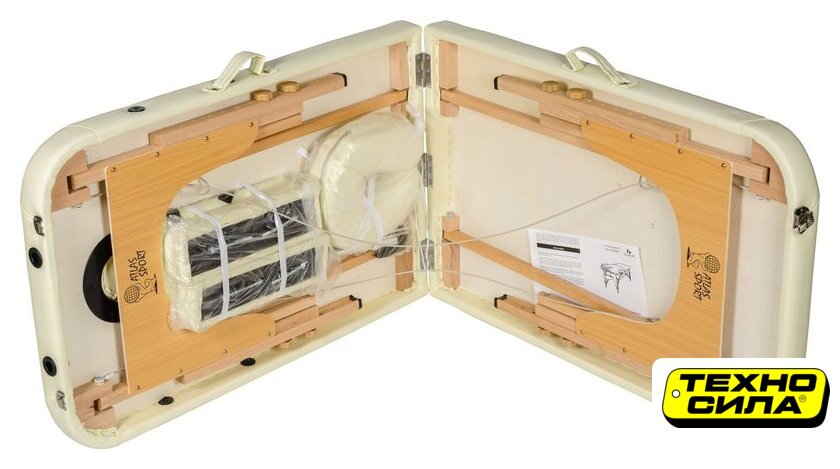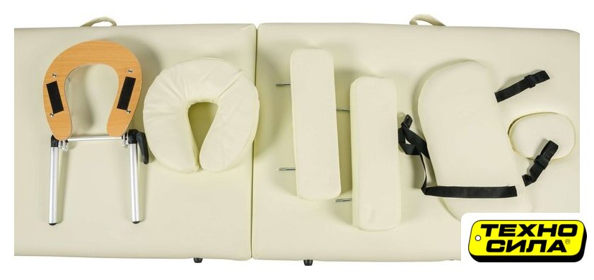 Комплектация | подголовник, подлокотники, подушка-заглушка люверса для лица, полка для рук, сумка для переноски |