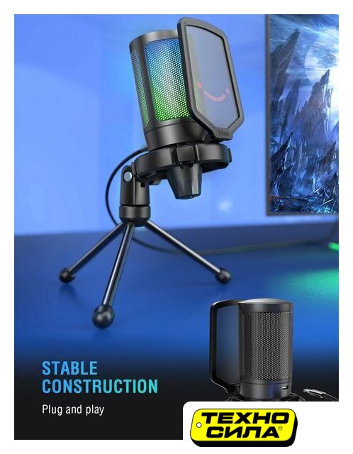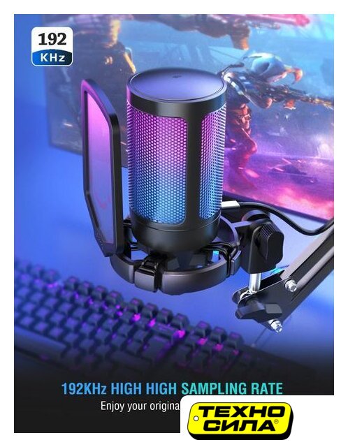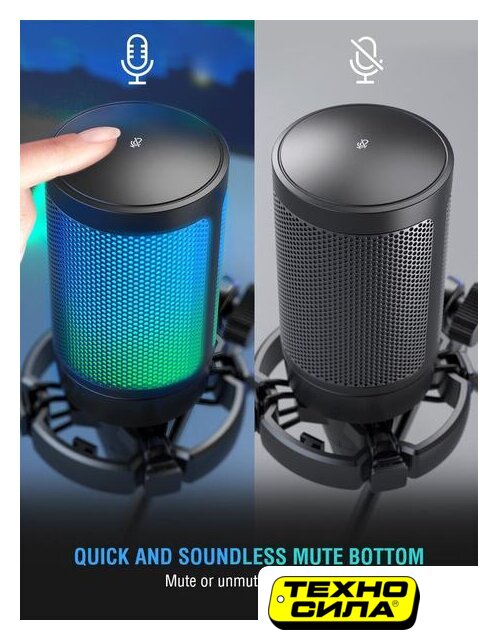 электретный (малый конденсатор), настольный, для стриминга и подкастов, кардиоидная направленность, 70-20000 Гц, разъем подключения USB Type-A