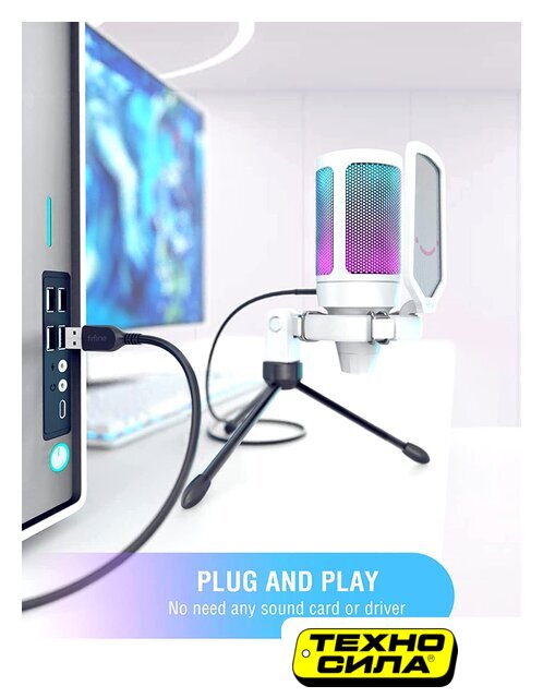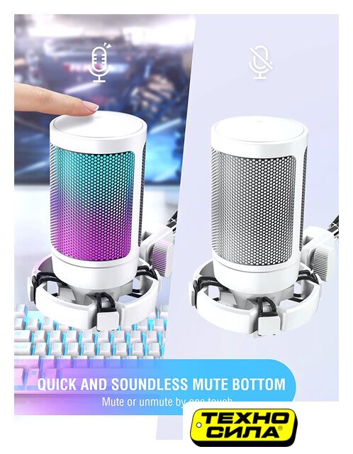 электретный (малый конденсатор), настольный, для стриминга и подкастов, кардиоидная направленность, 20-20000 Гц, разъем подключения USB Type-A/USB Type-C