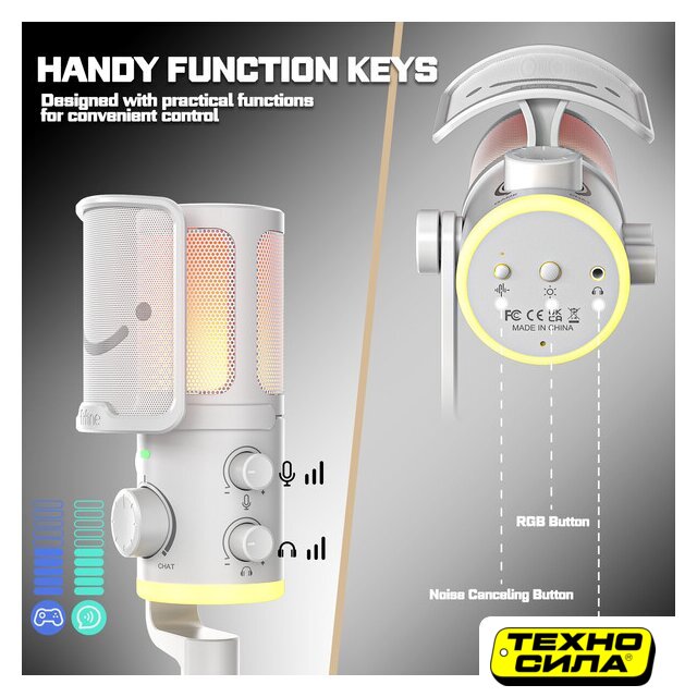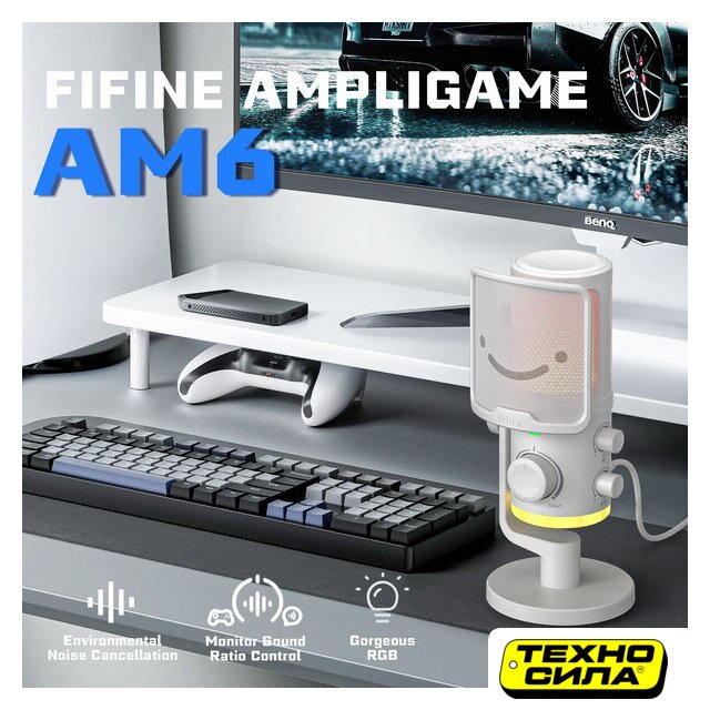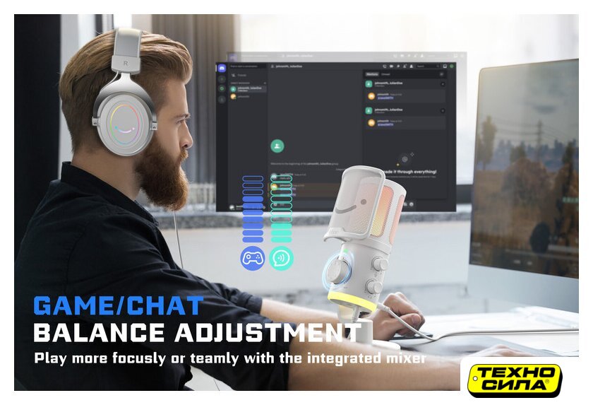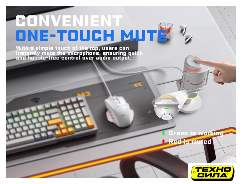 конденсаторный, кардиоидная направленность, настольный, для стриминга и подкастов, 60-18000 Гц, подключение по USB Type-A, белый