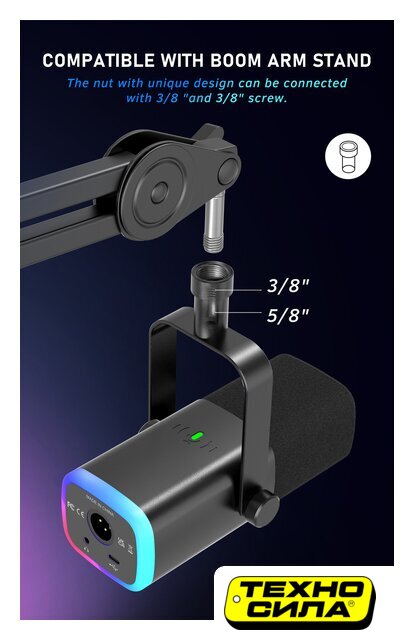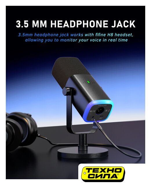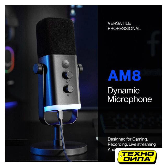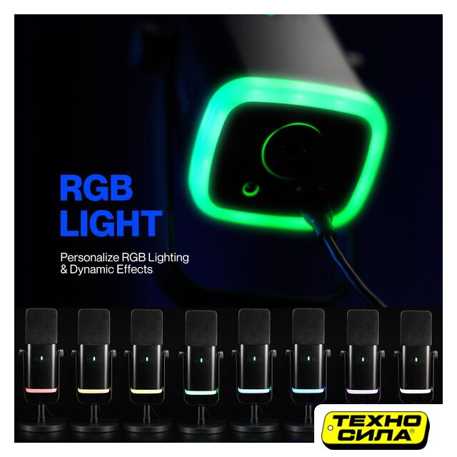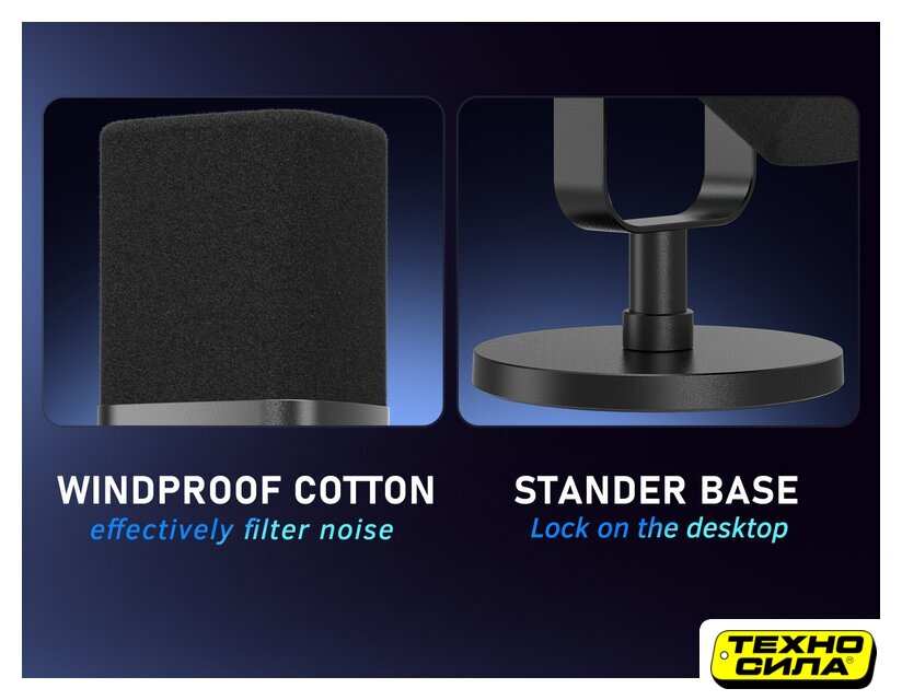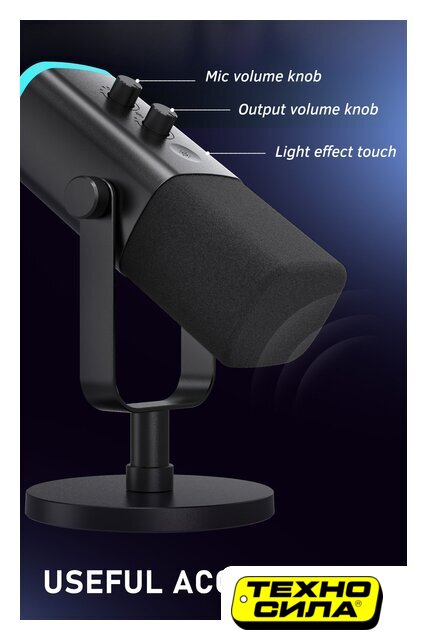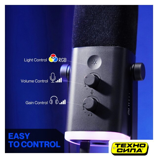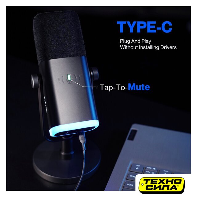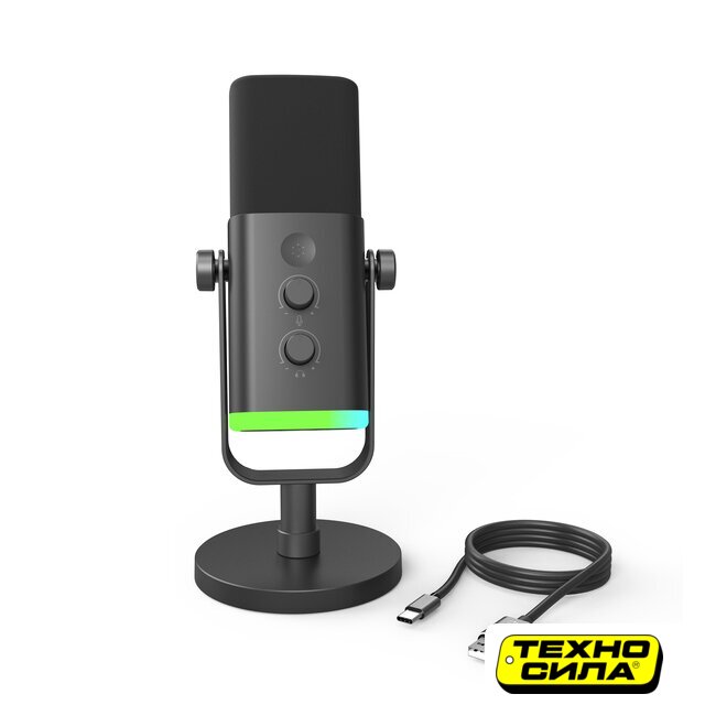 конденсаторный, кардиоидная направленность, настольный, для стриминга и подкастов, подключение по USB Type-A, черный