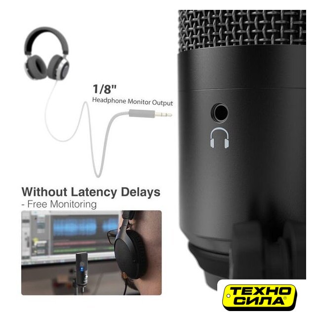 конденсаторный, кардиоидная направленность, настольный, для стриминга и подкастов, 50-20000 Гц, подключение по USB Type-A, черный