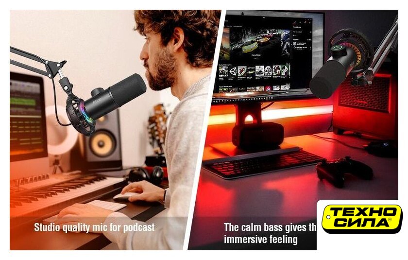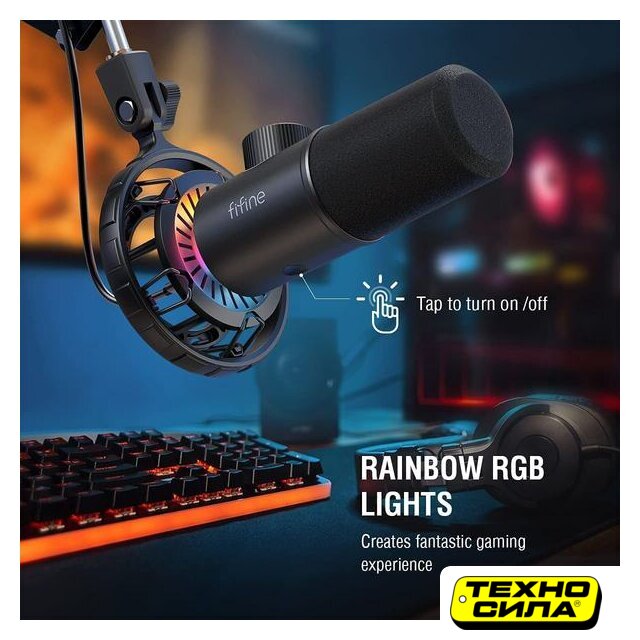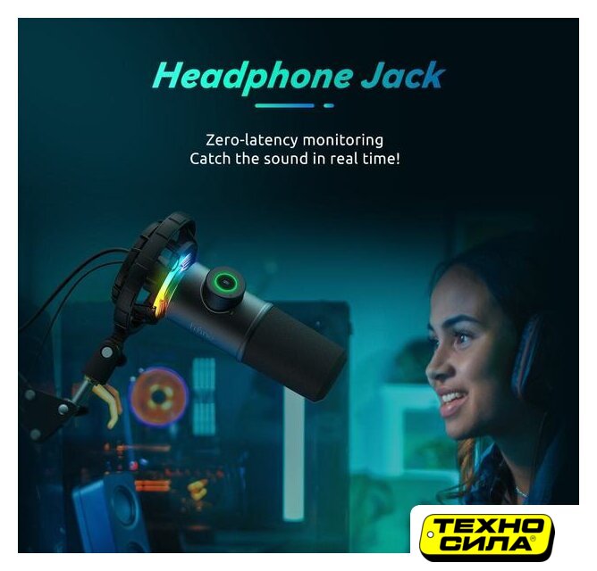 электретный (малый конденсатор), настольный, для стриминга и подкастов, кардиоидная/круговая/двойная ("восьмерка")/стерео направленность, 40-20000 Гц, разъем подключения USB Type-A, длина кабеля 1.5 м