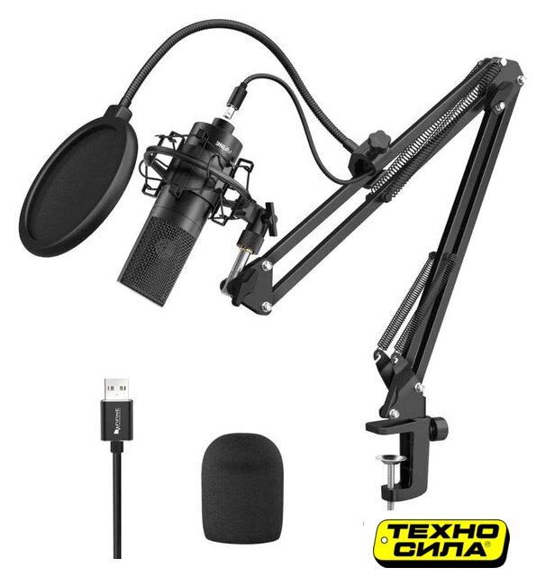 конденсаторный, кардиоидная направленность, настольный, для стриминга и подкастов, 50-20000 Гц, подключение по USB Type-A, черный