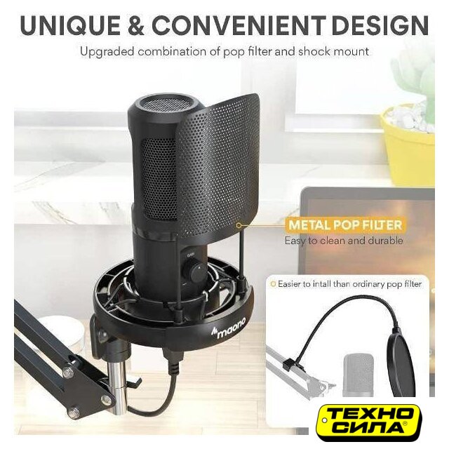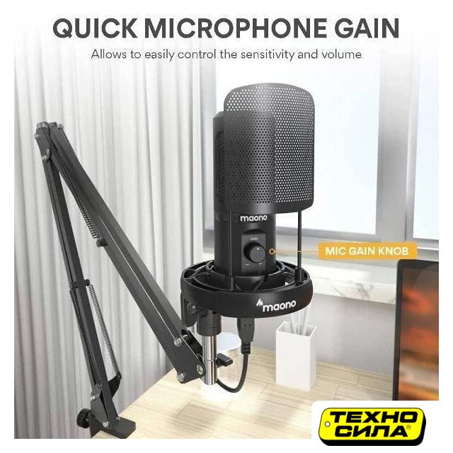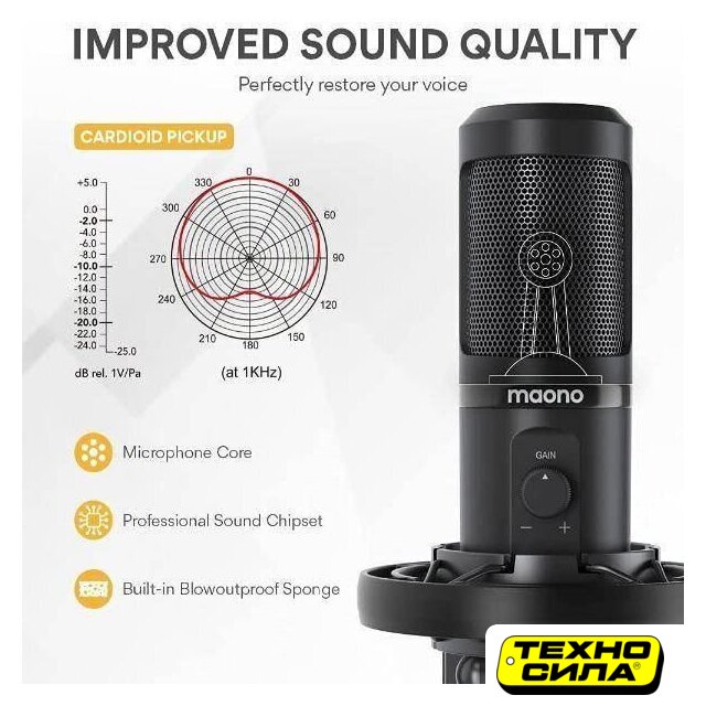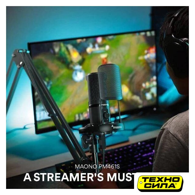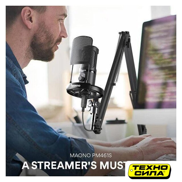 конденсаторный, кардиоидная направленность, настольный, для стриминга и подкастов, 60-18000 Гц, подключение по USB Type-A, черный
