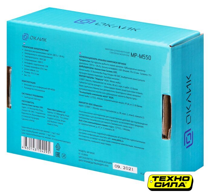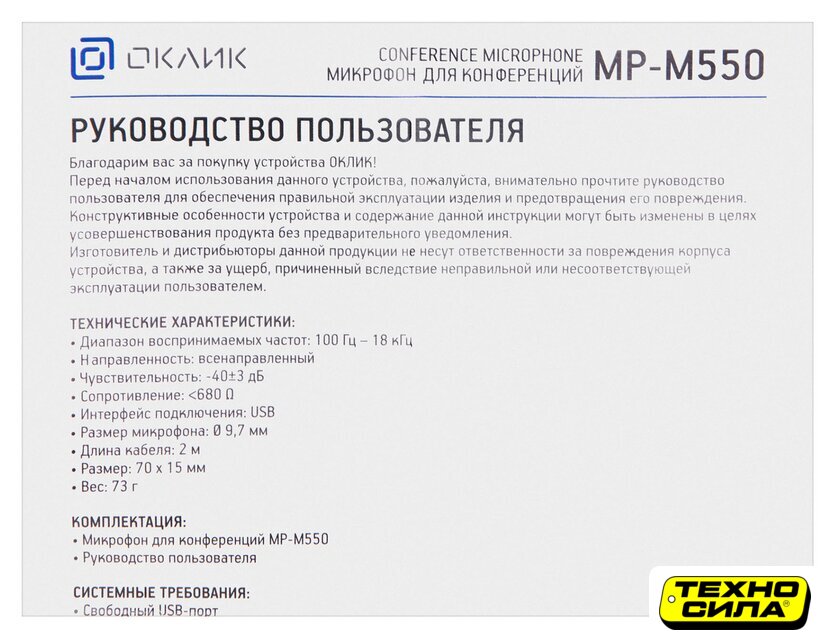 электретный (малый конденсатор), настольный, для общения, круговая направленность, 100-15000 Гц, разъем подключения USB Type-A, длина кабеля 1 м