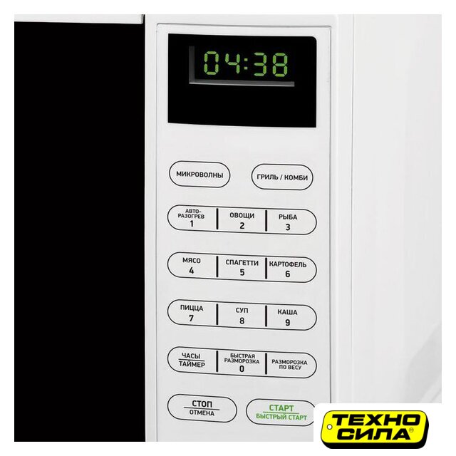 отдельностоящая, микроволны (соло), объем 23 л, выходная мощность микроволн 800 Вт, управление электронное, автоприготовление, авторазмораживание, цвет белый