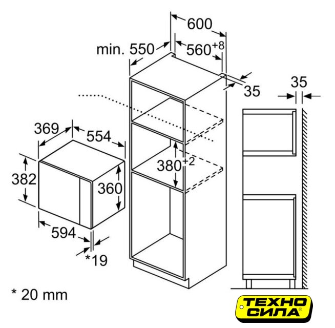 встраиваемая, микроволны (соло), объем 20 л, выходная мощность микроволн 800 Вт, управление электронное, автоприготовление, авторазмораживание, цвет белый