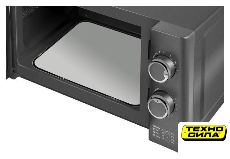 отдельностоящая, микроволны (соло), объем 23 л, выходная мощность микроволн 900 Вт, управление механическое, цвет черный