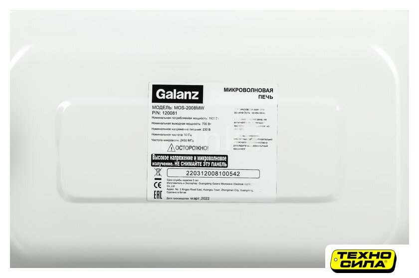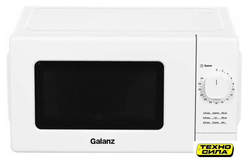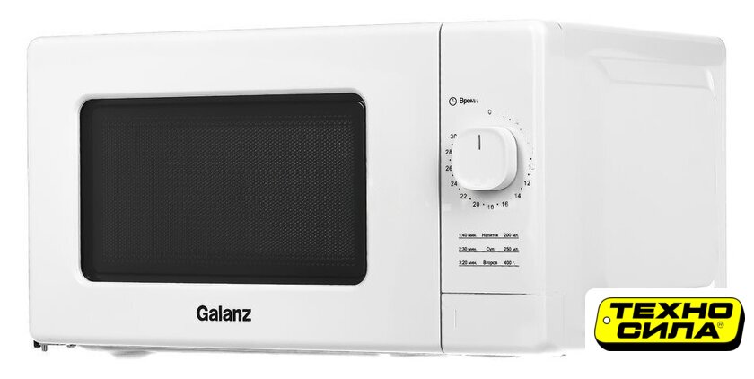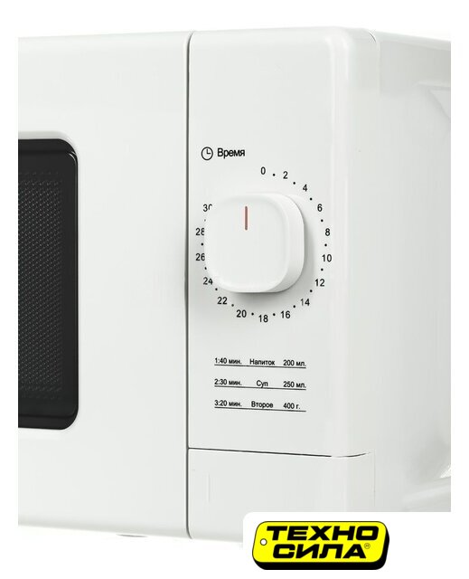 отдельностоящая, микроволны (соло), объем 20 л, выходная мощность микроволн 700 Вт, управление механическое, цвет белый