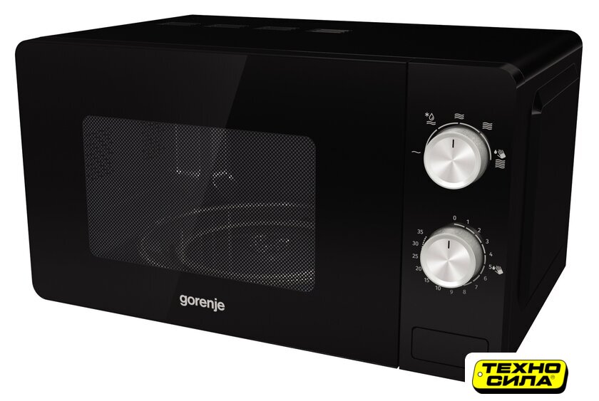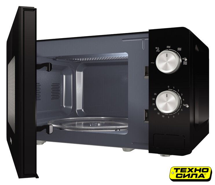отдельностоящая, микроволны (соло), объем 20 л, выходная мощность микроволн 700 Вт, управление механическое, цвет черный
