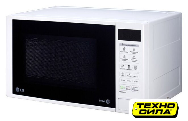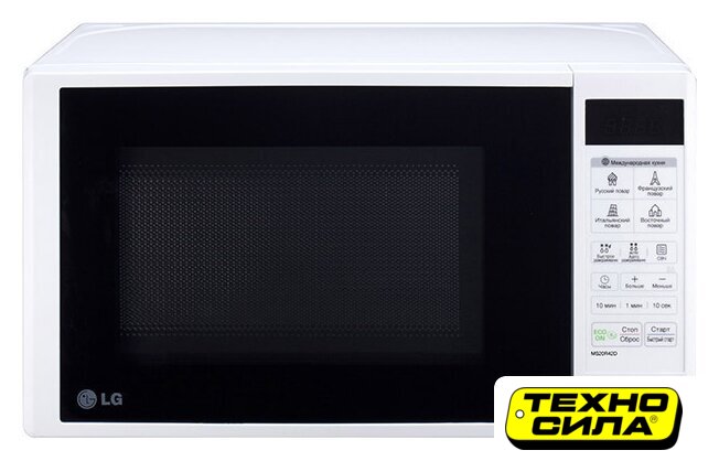 отдельностоящая, микроволны (соло), объем 20 л, выходная мощность микроволн 800 Вт, управление механическое, цвет белый