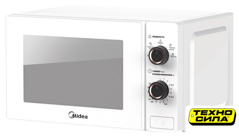 отдельностоящая, микроволны (соло), объем 20 л, выходная мощность микроволн 700 Вт, управление механическое, цвет белый