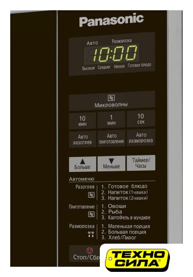 отдельностоящая, микроволны (соло), объем 25 л, выходная мощность микроволн 900 Вт, управление электронное, автоприготовление, авторазмораживание, цвет нержавеющая сталь/черный