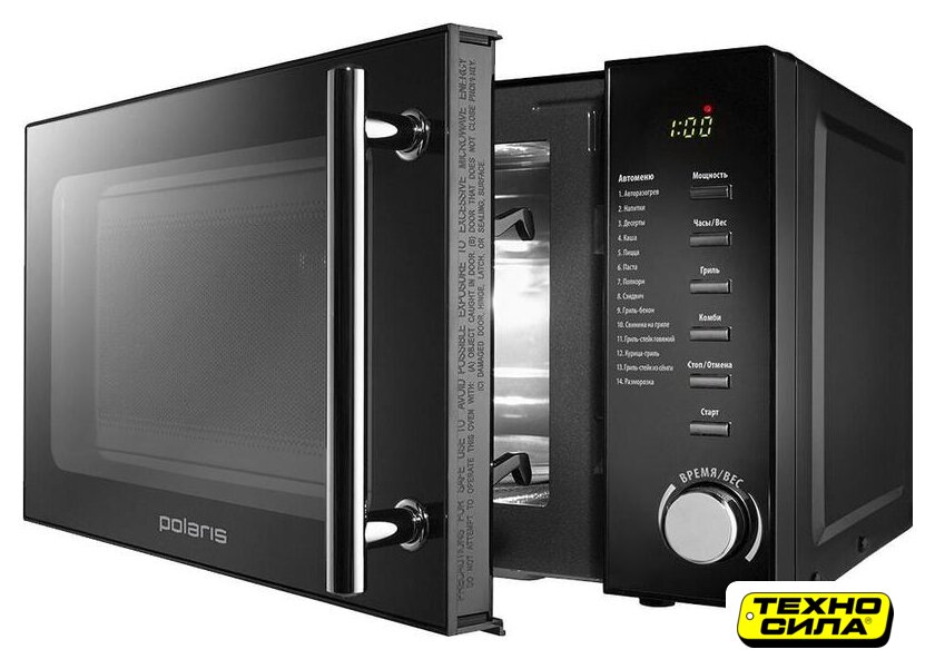 отдельностоящая, микроволны и гриль, объем 23 л, выходная мощность микроволн 800 Вт, управление электронное, автоприготовление, авторазмораживание, цвет черный