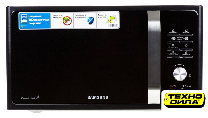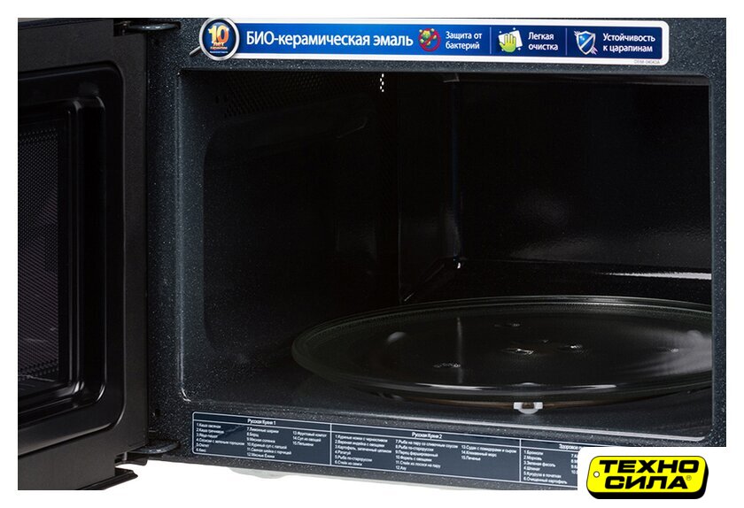 отдельностоящая, микроволны и гриль, объем 23 л, выходная мощность микроволн 800 Вт, управление электронное, автоприготовление, авторазмораживание, цвет черный