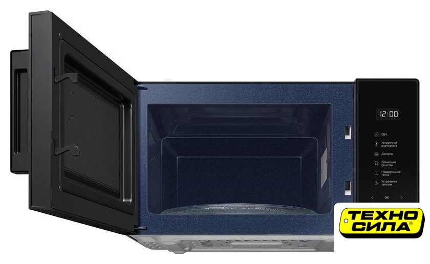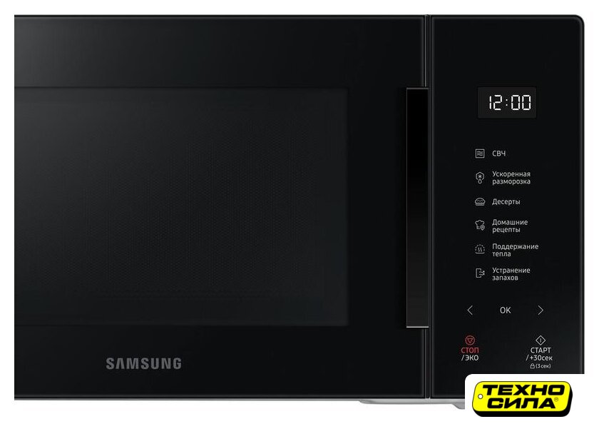 отдельностоящая, микроволны (соло), объем 23 л, выходная мощность микроволн 800 Вт, управление электронное, автоприготовление, авторазмораживание, цвет нержавеющая сталь/черный