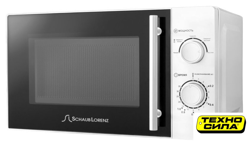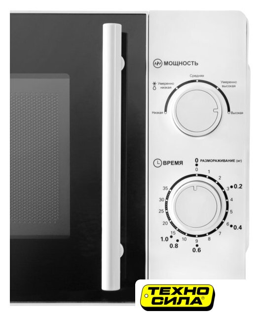отдельностоящая, микроволны (соло), объем 20 л, выходная мощность микроволн 700 Вт, управление механическое, цвет белый
