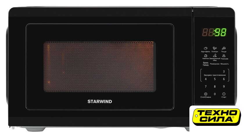 отдельностоящая, микроволны (соло), объем 20 л, выходная мощность микроволн 800 Вт, управление механическое, цвет черный
