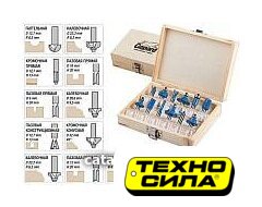 16 шт в наборе, кромочная (профильная)/пазовая/обгонная, обрабатываемый материал: дерево, диаметр хвостовика 8 мм