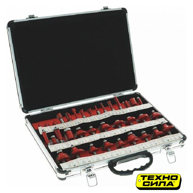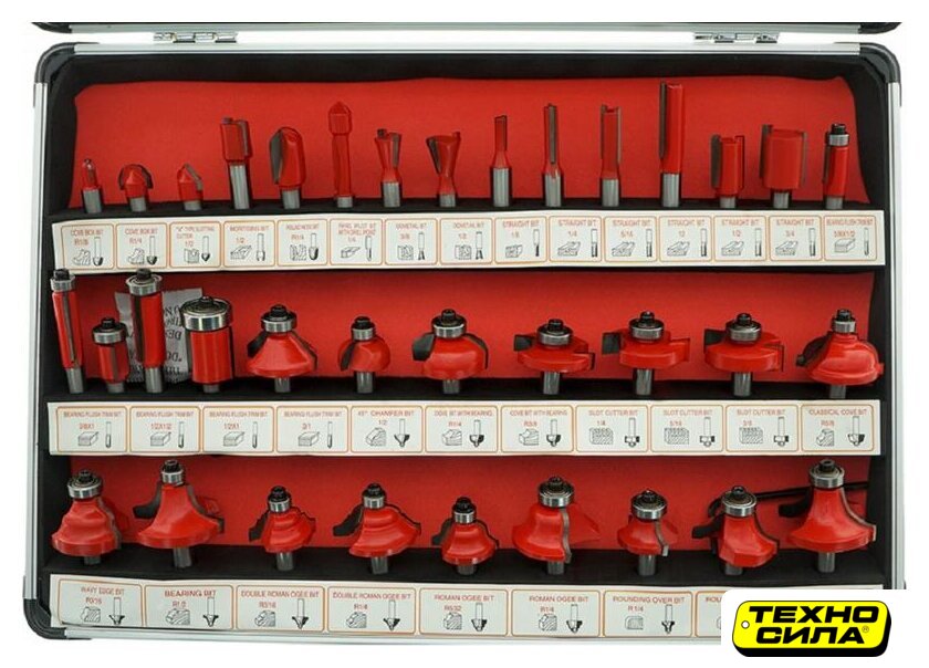 Комплектация | - Фреза галтельная 8 мм - 3 шт- Фреза пазовая v-образная 8 мм- Фреза пазовая прямая 8 мм - 5 шт- Фреза конструкционная "ласточкин хвост" 8 мм - 2 шт- Фреза кромочная прямая 8 мм - 6 шт- Фреза калевочная 8 мм - 13 шт- Фреза шлицевая 8 мм- Фреза фальцевая 8 мм - 3 шт- Фреза конусная 8 мм |