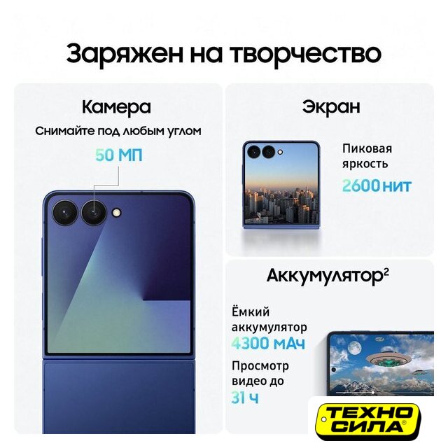 | Отличия от предыдущего поколения | ✅ Galaxy Z Flip7 получил увеличенный внешний экран FlexWindow размером 4,1 дюйма с частотой обновления 120 Гц и яркостью до 2600 нит, что позволяет использовать множество функций без необходимости раскрывать устройство. Основной внутренний дисплей также увеличился до 6,9 дюйма, обеспечивая более комфортное взаимодействие с контентом. Кроме того, устройство стало тоньше и легче, что улучшает его портативность и удобство использования.✅ В отличие от Z Flip6, который оснащался процессором Snapdragon 8 Gen 3, новый Z Flip7 работает на базе 10-ядерного чипсета Exynos 2500, выполненного по 3-нм техпроцессу, что обеспечивает улучшенную производительность и энергоэффективность.✅ Внешний экран Galaxy Z Flip7 имеет более тонкие рамки, самые тонким в серии Galaxy Z Flip. Такая конструкция от края до края создает ощущение безграничного экрана, что делает его еще более удобным для использования в сложенном состоянии. В раскрытом виде это наш самый тонкий Flip, что ставит его в один ряд с любым другим смартфоном. Размер основного экрана увеличился до 6,9 дюйма, а соотношение сторон составляет 21:9, что обеспечивает более разнообразное использование. |