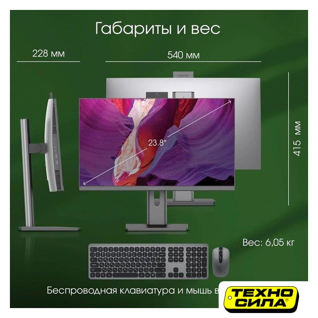 23.8" 1920 x 1080 IPS, матовый, несенсорный, AMD Ryzen 5 7520U 4300 МГц, 16 ГБ, SSD 512 ГБ, видеокарта встроенная, без ОС, цвет серебристый