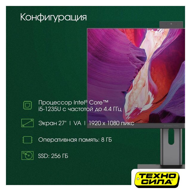 23.8" 1920 x 1080 IPS, матовый, несенсорный, Intel Core i3 1315U 4500 МГц, 8 ГБ, SSD 256 ГБ, видеокарта встроенная, без ОС, цвет темно-серый