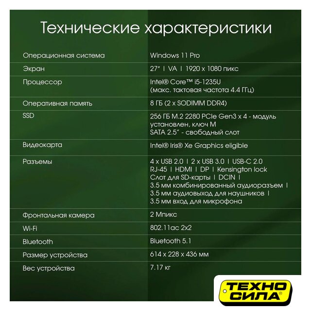 23.8" 1920 x 1080 IPS, матовый, несенсорный, AMD Ryzen 7 5700U 4300 МГц, 8 ГБ, SSD 256 ГБ, видеокарта встроенная, Windows 11 Pro, цвет черный