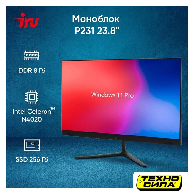 23.8" 1920 x 1080 IPS, матовый, несенсорный, Intel Celeron N5100 2800 МГц, 8 ГБ, SSD 256 ГБ, видеокарта встроенная, Windows 11 Pro, цвет черный