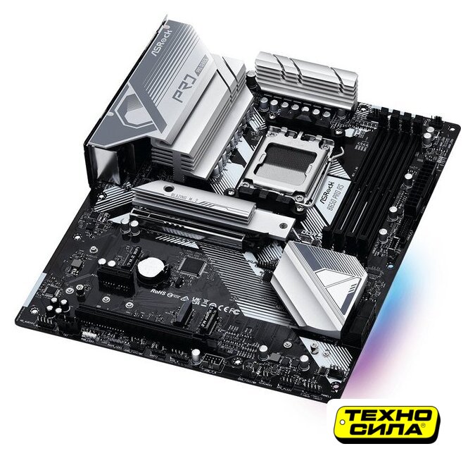 mATX, сокет AMD AM5, чипсет AMD B650, память 4xDDR5, слоты: 1xPCIe x16, 1xPCIe x1, 2xM.2