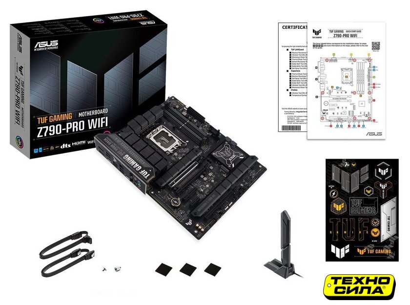 Комплектация | Cables2 x SATA 6Gb/s cablesMiscellaneous1 x ASUS WiFi Q-Antenna1 x TUF GAMING sticker2 x M.2 rubber packages1 x Screw package for M.2 SSDDocumentation1 x TUF certification card1 x Quick start guide |