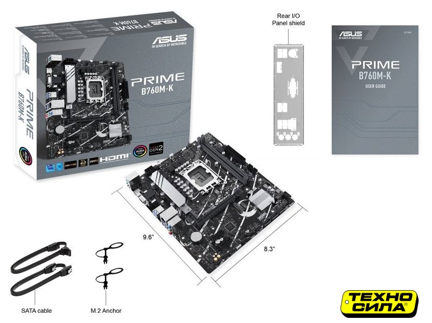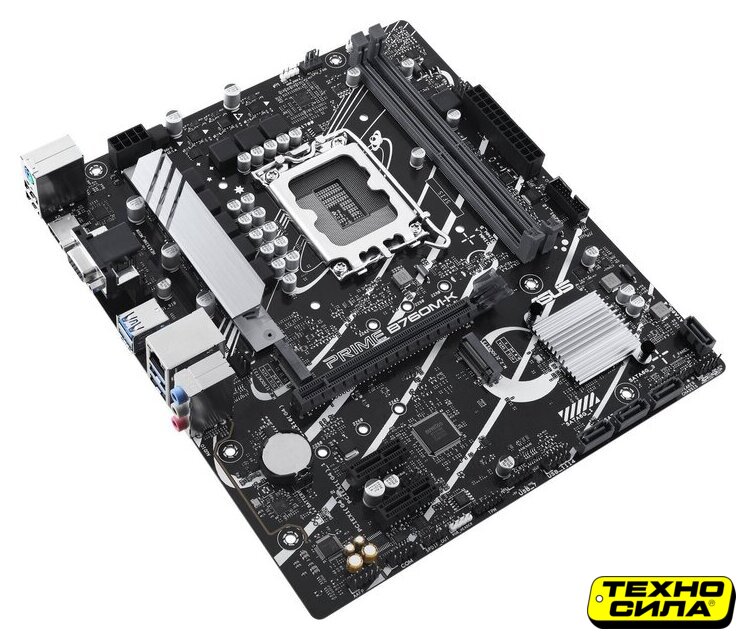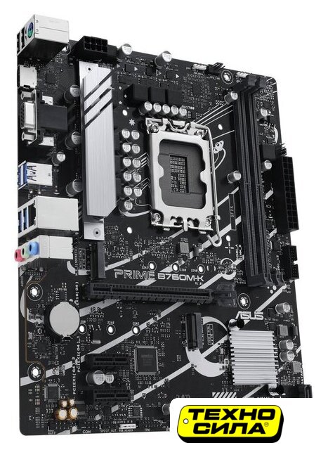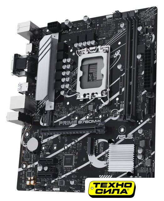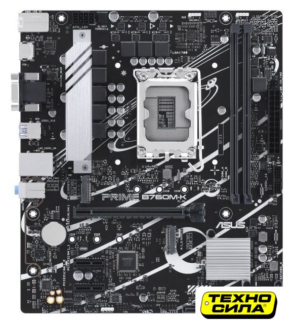 mATX, чипсет Intel B760, память 2xDDR5 до 4800 МГц, слоты: 1xPCIe x16 4.0, 1xPCIe x1, 2xM.2, 8+1+1 фаз питания