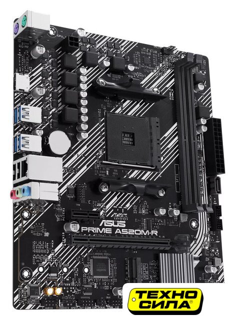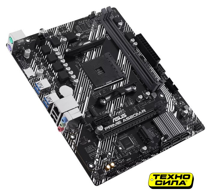 mATX, сокет AMD AM4, чипсет AMD A520, память 2xDDR4, слоты: 1xPCIe x16, 2xPCIe x1, 1xM.2