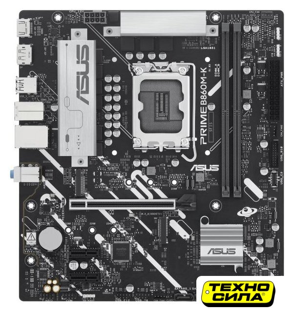 mATX, сокет Intel LGA1851, чипсет Intel B860, память 4xDDR5 до 9066 МГц, слоты: 1xPCIe x16 5.0, 2xPCIe x1, 2xM.2, 4+1+2 фаз питания