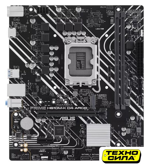 mATX, сокет Intel LGA1700, чипсет Intel H610, память 2xDDR4 до 3200 МГц, слоты: 1xPCIe x16 4.0, 1xPCIe x1