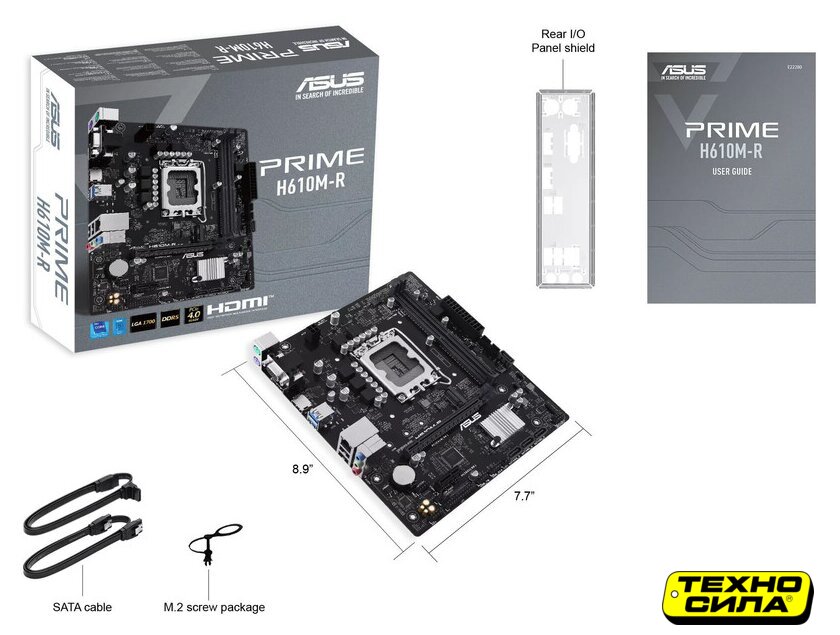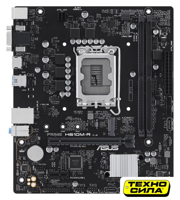 mATX, сокет Intel LGA1700, чипсет Intel H610, память 2xDDR4, слоты: 1xPCIe x16, 1xPCIe x1, 1xM.2