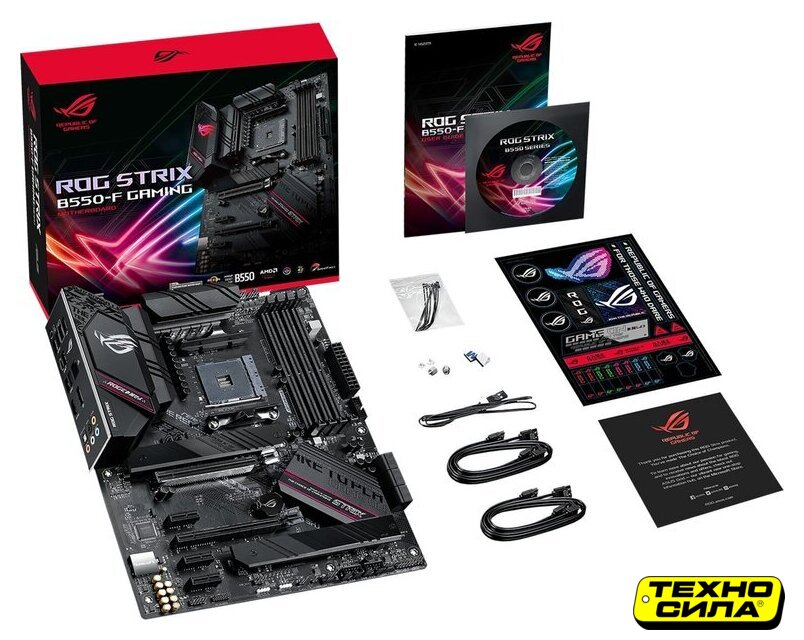 ATX, сокет AMD AM4, чипсет AMD B550, память 4xDDR4 до 5100 МГц, слоты: 2xPCIe x16 4.0 и 3.0, 3xPCIe x1, 2xM.2