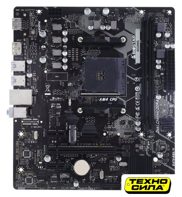 mATX, сокет AMD AM4, чипсет AMD A520, память 2xDDR4 до 4600 МГц, слоты: 1xPCIe x16 3.0, 1xPCIe x1, 1xM.2
