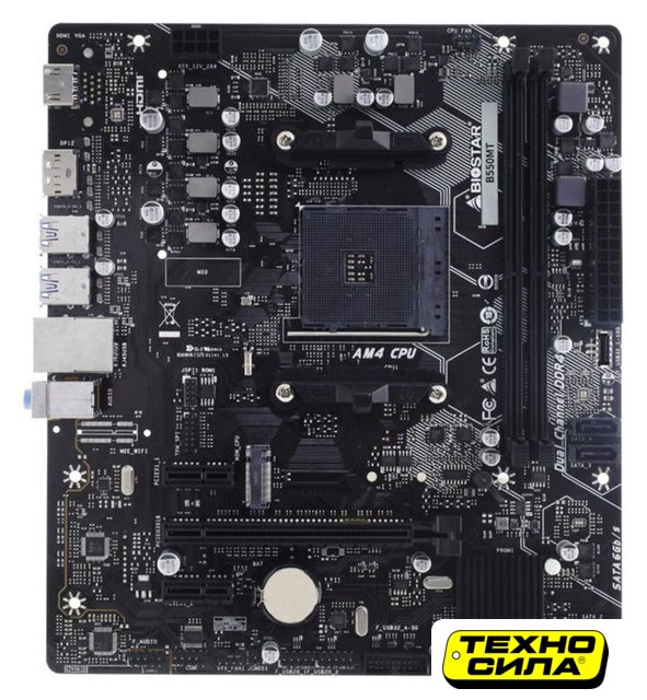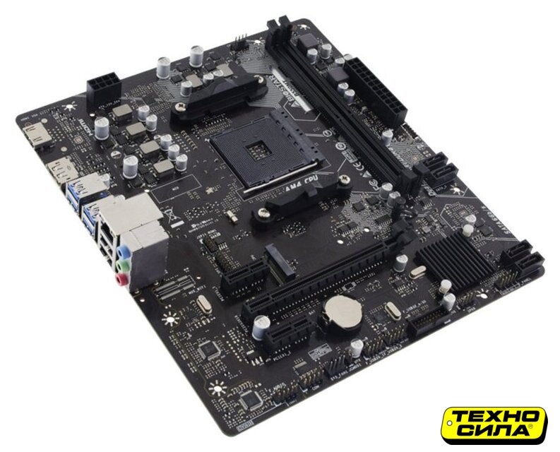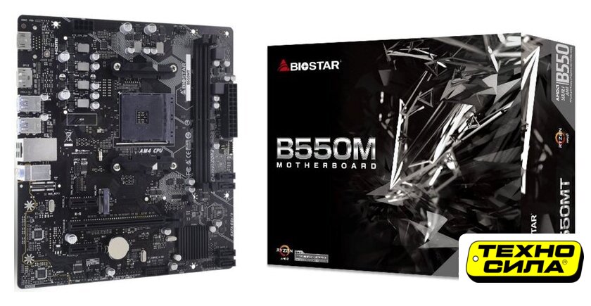 mATX, сокет AMD AM4, чипсет AMD B550, память 2xDDR4 до 4600 МГц, слоты: 1xPCIe x16 4.0 и 3.0, 1xPCIe x1, 1xM.2